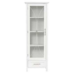 Delaney Linen Tower Storage Cabinet in a white finish has an elegant crown molded top with one door and one drawer offering storage with style for your bathroom. It also offers adjustable shelves making it easy to store items of different sizes. The metal glider drawer allows for easy open and close operation. The tempered glass-paneled doors decorated with Cathedral style wire providing a looming view into the cabinet. It features metal ... Read More...