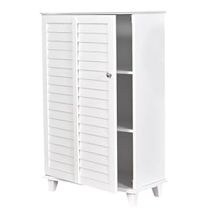 Decorative and stylish, this louvered towel safe is the perfect solution to maximize storage space in your bathroom or laundry room. The white louvered slats create a comfortable beach house atmosphere while easily concealing all your toiletries. This cabinet has two fixed shelves that provide a large amount of storage for your convenience. - 23.5" x 11.5" x 37" Tall - Frost White Finish - Louvered Doors - 2 adjustable shelves inside... Read More...